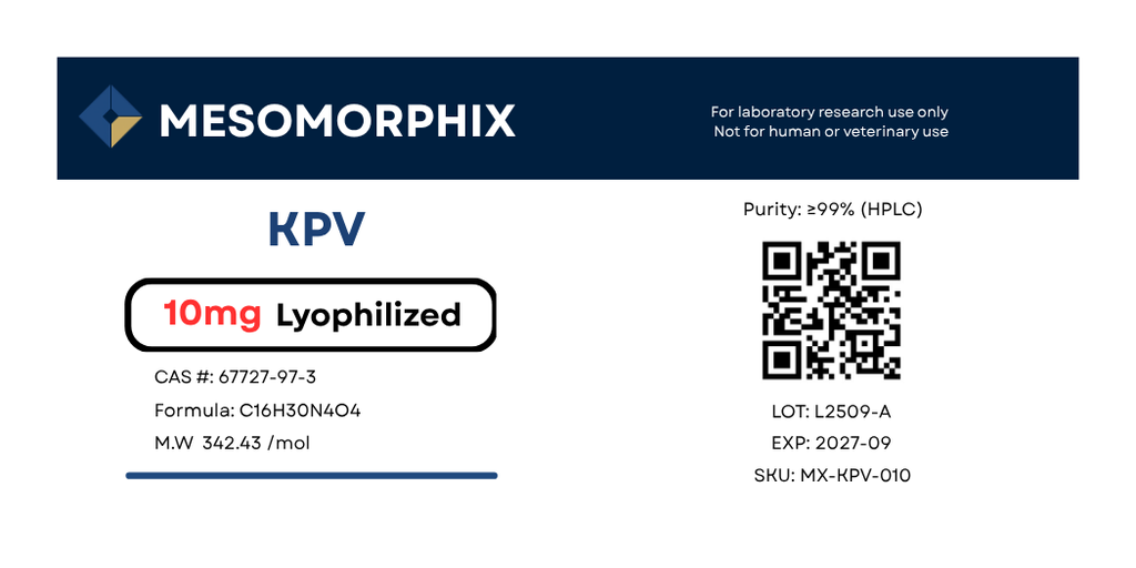 • Endogenous context: KPV is the C-terminal fragment within the endogenous neuropeptide α-MSH (a cleavage product of proopiomelanocortin, POMC).